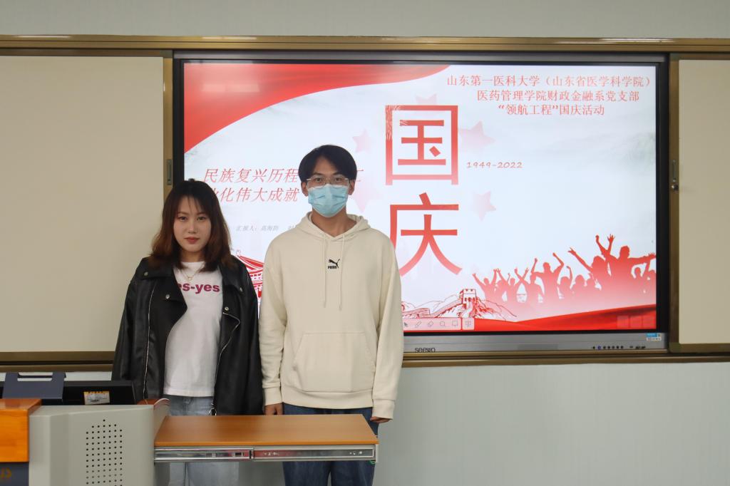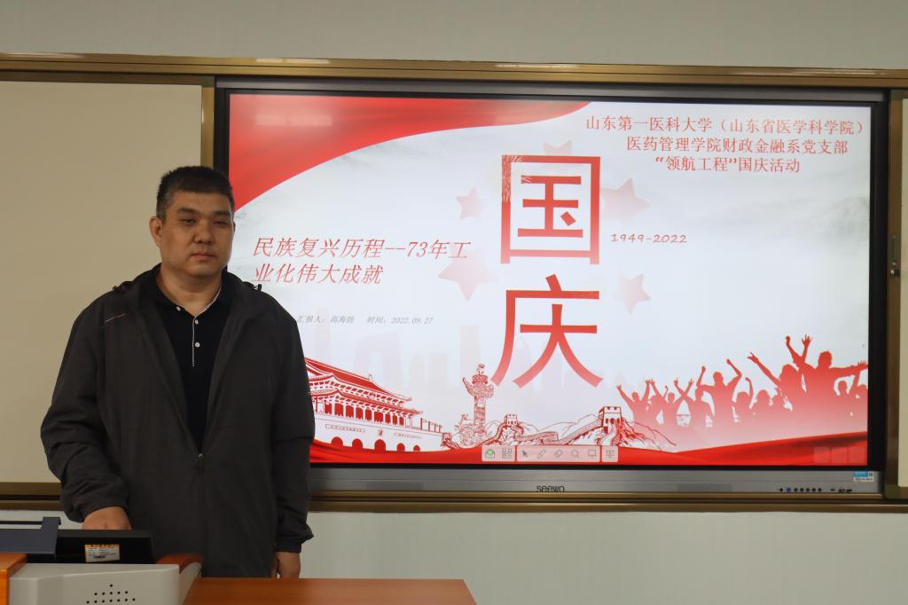在国庆73周年来临之际,在喜迎二十大的伟大时刻,9月27日下午,诸侯ok1133官网财政金融系党支部在长城路校区教学南楼C3020教室,与所联系的班级2021级人力资源管理专业本科1班全体同学开展了“回顾辉煌历程,助力民族复兴”国庆主题活动。活动由支部组织委员高海防老师主持。